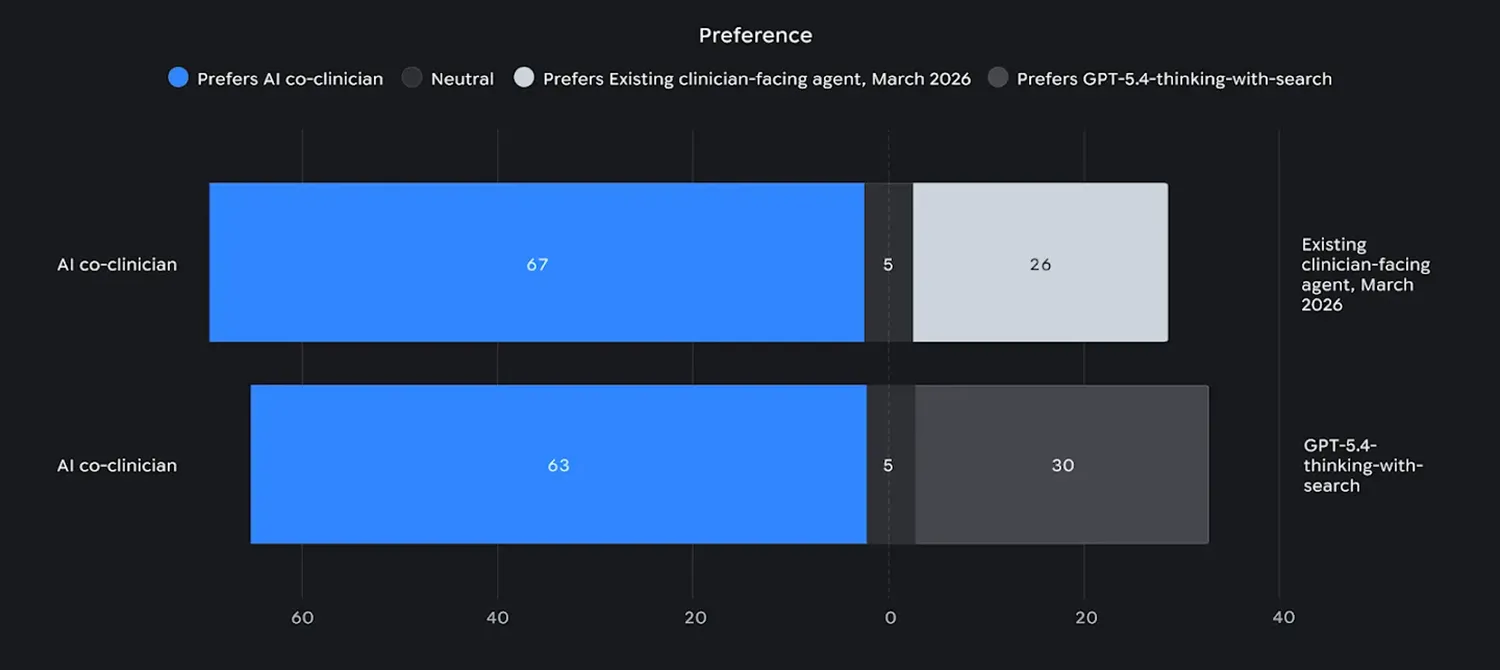 Der AI co-clinician wertet Audio und Video live aus. Bei offenen Fachfragen schlägt das System die direkte Konkurrenz.
