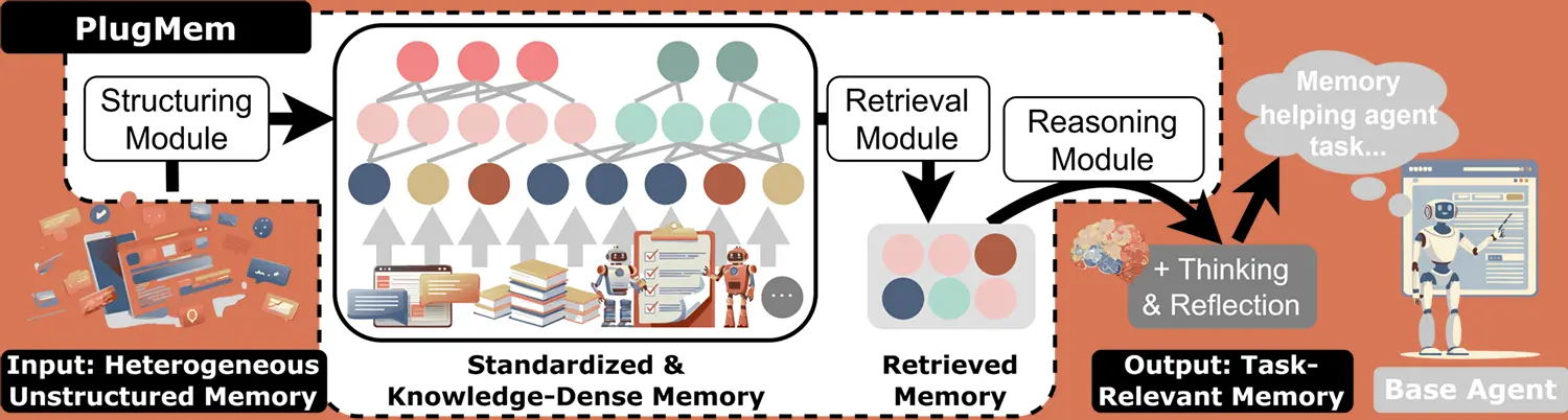 Microsoft Research hat mit PlugMem ein neues Gedächtnismodul für KI-Agenten vorgestellt. Das System wandelt rohe Interaktionsdaten in strukturiertes Wissen um. Dadurch steigt die Leistung der Modelle spürbar, während der Token-Verbrauch drastisch sinkt.