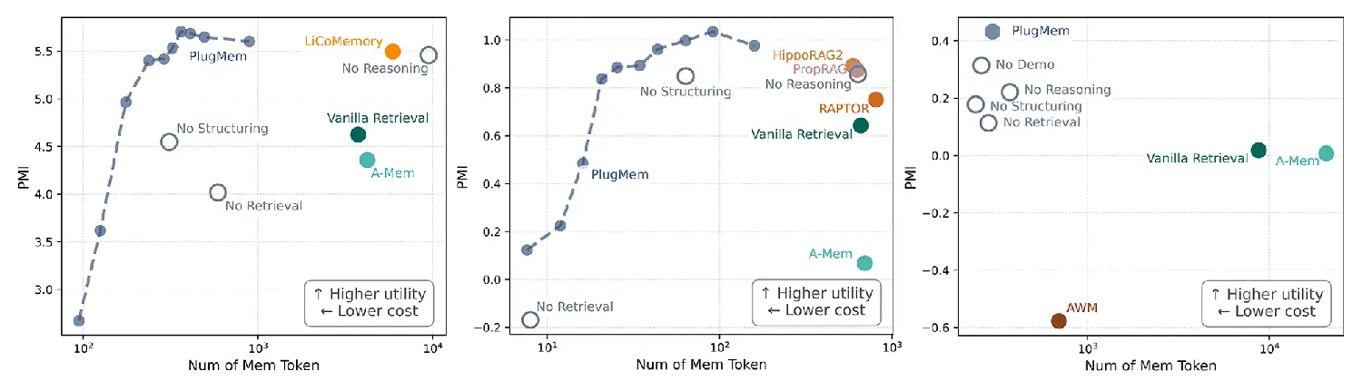 Dieser strukturierte Ansatz führt zu deutlich messbaren Verbesserungen bei der täglichen Nutzung. Eine aktuelle Auswertung der Forscher zeigt den direkten Vergleich mit etablierten Gedächtnis-Methoden wie RAPTOR, Vanilla Retrieval oder HippoRAG2. PlugMem liefert den Agenten sehr exakt die Informationen, die sie für komplexe Entscheidungsfindungen benötigen. In den durchgeführten Benchmarks erreicht das neue Modul den höchsten inhaltlichen Nutzen für das Gesamtsystem.