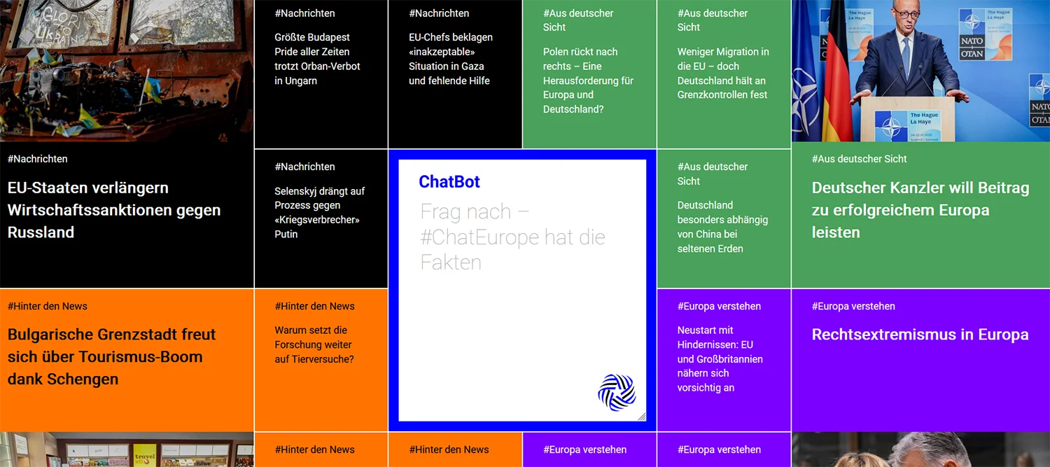 ChatEurope ist mehr als ein Chatbot. Die Plattform bietet multimediale Inhalte wie Erklärvideos, Reportagen, Hintergrundanalysen und Dokumentationen, die auf die individuellen Fragen der Nutzer abgestimmt sind. Der Bot antwortet aktuell in sieben Sprachen, darunter Deutsch, Englisch, Französisch, Italienisch, Spanisch, Polnisch und Rumänisch – perspektivisch soll jede offizielle EU-Sprache verfügbar sein.
