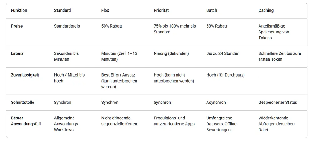 Für Produktionsumgebungen und nutzerorientierte Apps steht ab sofort die Priority-Inference zur Auswahl. Diese Premium-Stufe bewahrt Anfragen zuverlässig vor Verzögerungen und unterbricht aktive Prozesse nicht. Interaktive Live-Support-Bots oder Echtzeit-Filter profitieren von einer konstant niedrigen Latenz im Sekundenbereich.