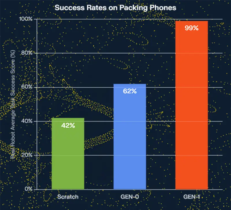 Um eine völlig neue physische Aufgabe zu erlernen, benötigt GEN-1 anschließend nur noch eine einzige Stunde an spezifischen Roboterdaten. Das senkt den Aufwand für die Adaption an neue Hardware drastisch.