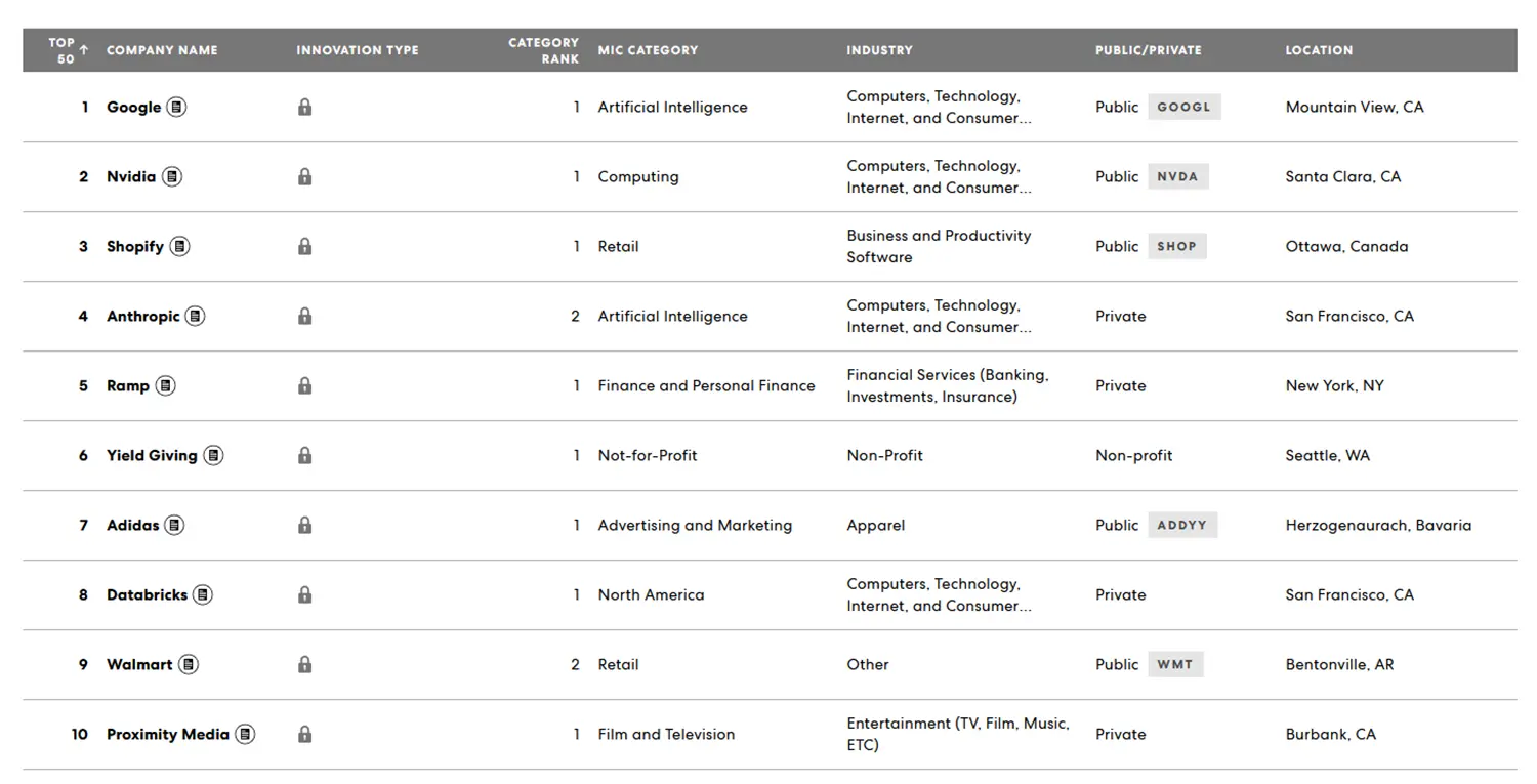 Die aktuelle Rangliste von Fast Company verdeutlicht eindrucksvoll die Marktdynamik im KI-Sektor. Ein genauer Blick auf die weiteren Spitzenplatzierungen zeigt die Relevanz der Branche für die gesamte Wirtschaft.