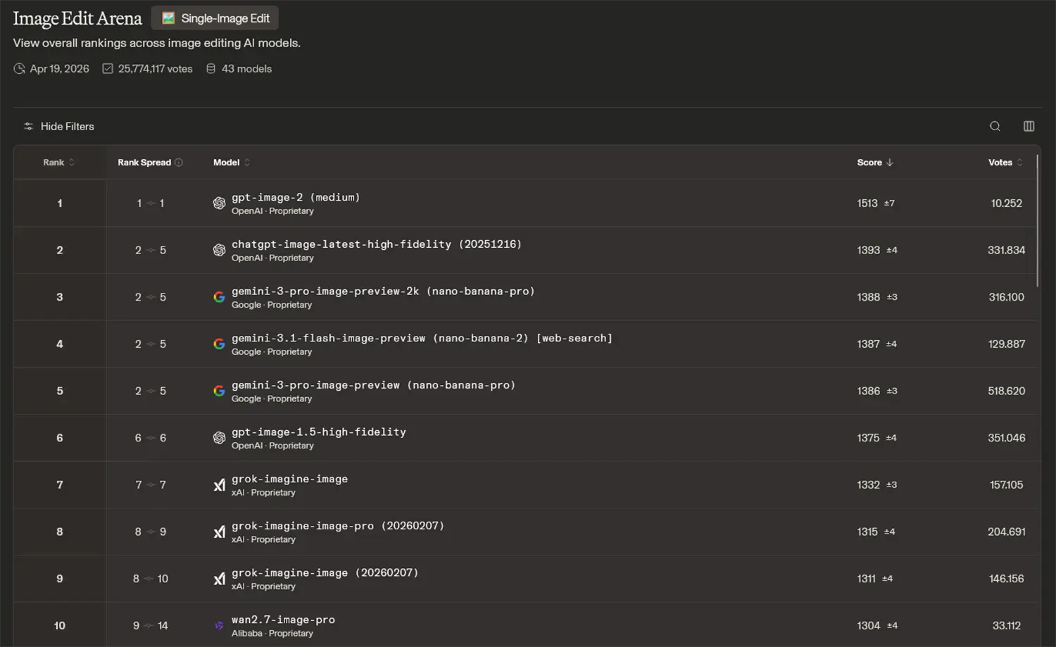 Ein ähnliches Bild zeigt sich bei der isolierten Betrachtung der Bildbearbeitungs-Fähigkeiten. Auch in der Image Edit Arena setzt sich das System mit 1513 Punkten unangefochten an die Spitze. Vorherige Platzhirsche sowie aktuelle Konkurrenzmodelle verharren hier auf den Rängen dahinter mit Werten knapp unter der 1400er-Marke. Derart eindeutige Punkteabstände belegen den bemerkenswerten qualitativen Vorsprung der neuen Generation.