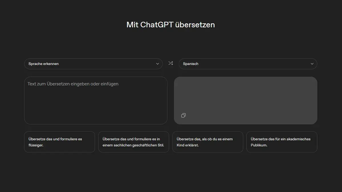 Ohne Prompting und direkt im Browser kann Jeder jetzt seine Texte auch von OpenAI übersetzen lassen.