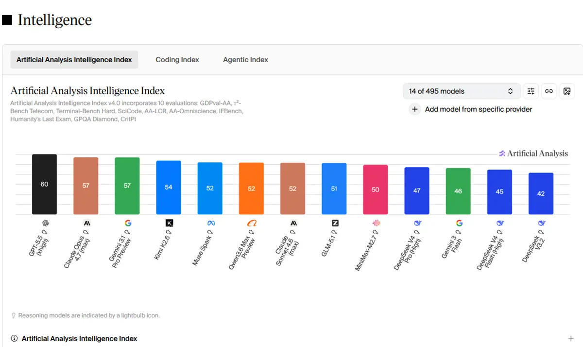 Die unabhängigen Rankings wirken ernüchternder als DeepSeeks eigene Tabellen. Im Artificial Analysis Intelligence Index liegt DeepSeek V4 Pro High bei 47 Punkten. Damit landet das Modell klar hinter der US-Konkurrenz und auch hinter einigen chinesischen Modellen wie Kimi K2.6 mit 54 Punkten.