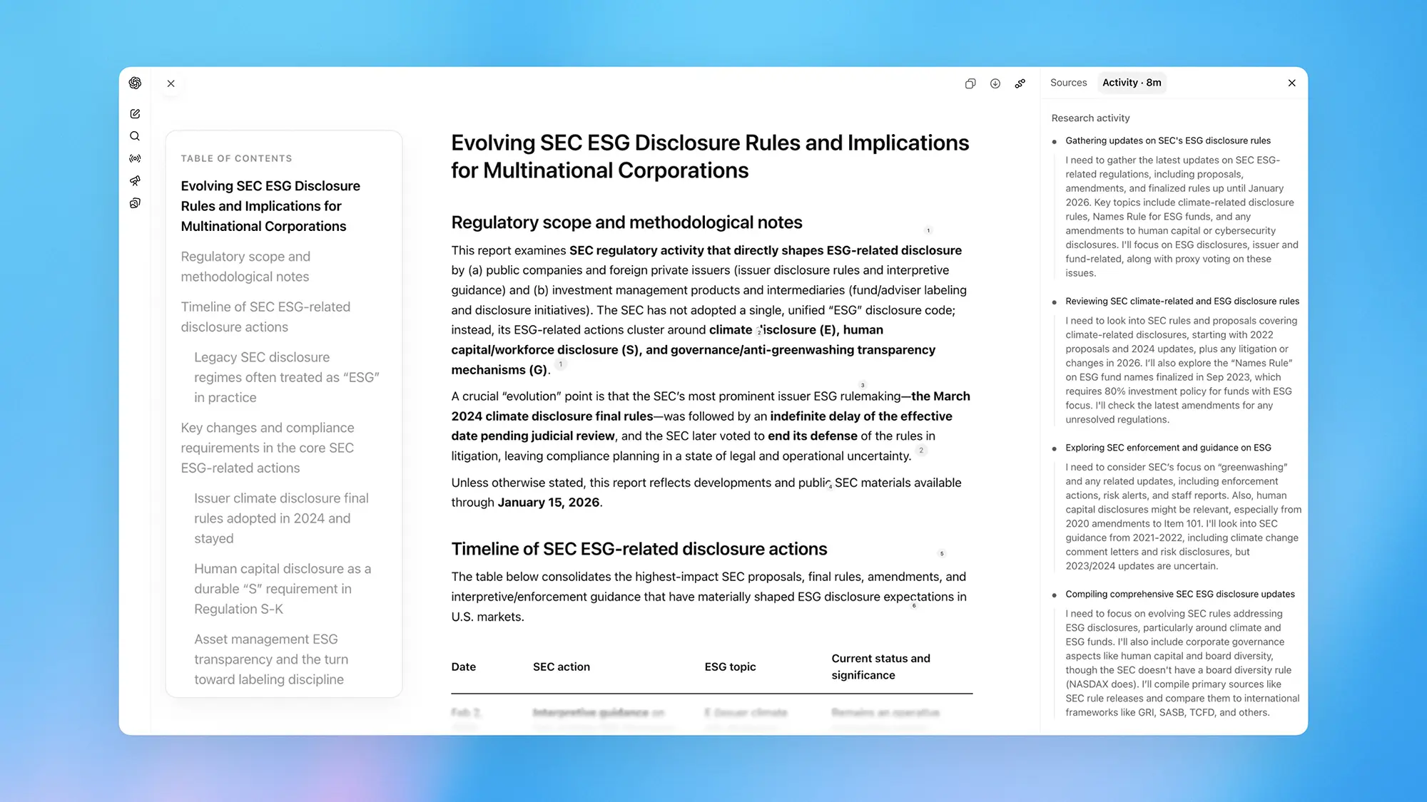 Abschließend ändert sich die Präsentation der Ergebnisse: Die generierten Reports werden nun in einer Vollbildansicht dargestellt, was die Lesbarkeit umfangreicher Textmengen und Tabellen auf Desktop-Monitoren verbessern soll. Mit diesen Anpassungen zielt OpenAI offensichtlich darauf ab, das Tool stärker in professionellen Arbeitsabläufen zu verankern, wo Präzision und Nachvollziehbarkeit Vorrang vor Geschwindigkeit haben.