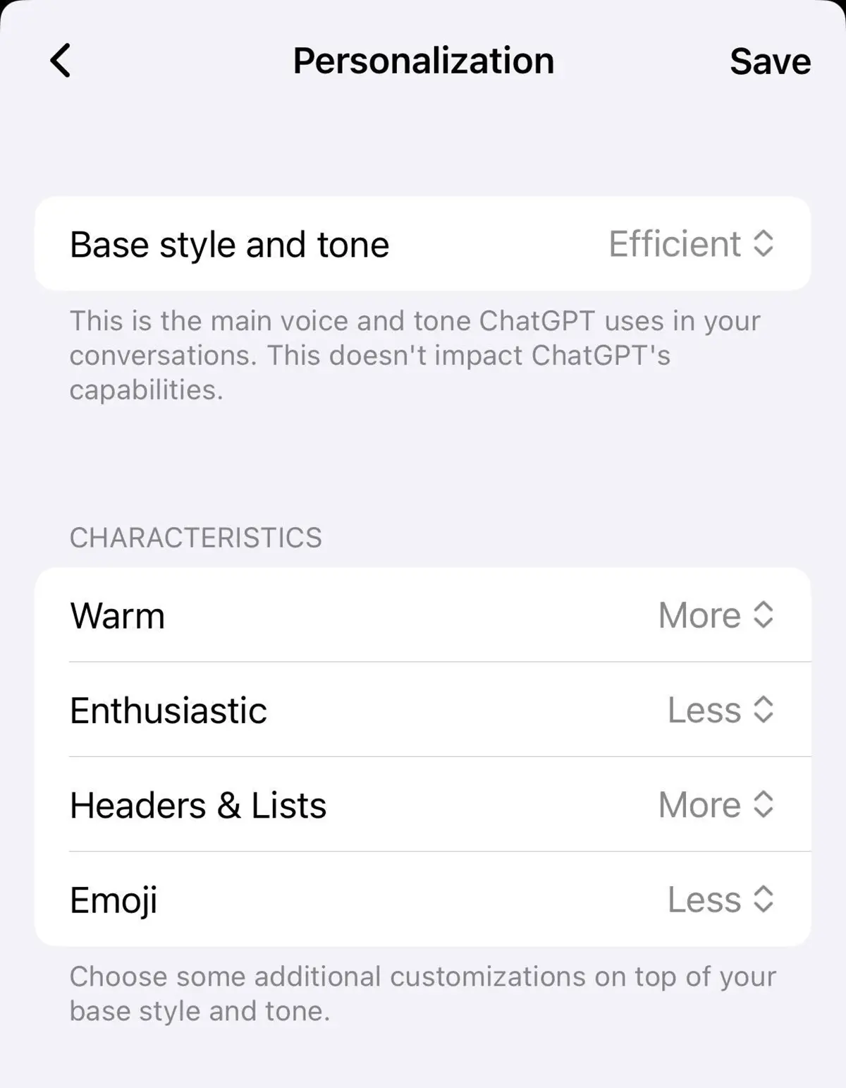 Mit diesem Update integriert OpenAI Funktionen in die Benutzeroberfläche, die zuvor nur über die „Custom Instructions“ (Benutzerdefinierte Anweisungen) erreichbar waren. Während Custom Instructions weiterhin für inhaltliche Kontextualisierung – etwa die Rolle des KI-Assistenten oder spezifisches Fachwissen – nützlich bleiben, entfällt die Notwendigkeit, dort stilistische Formatierungsregeln zu hinterlegen.