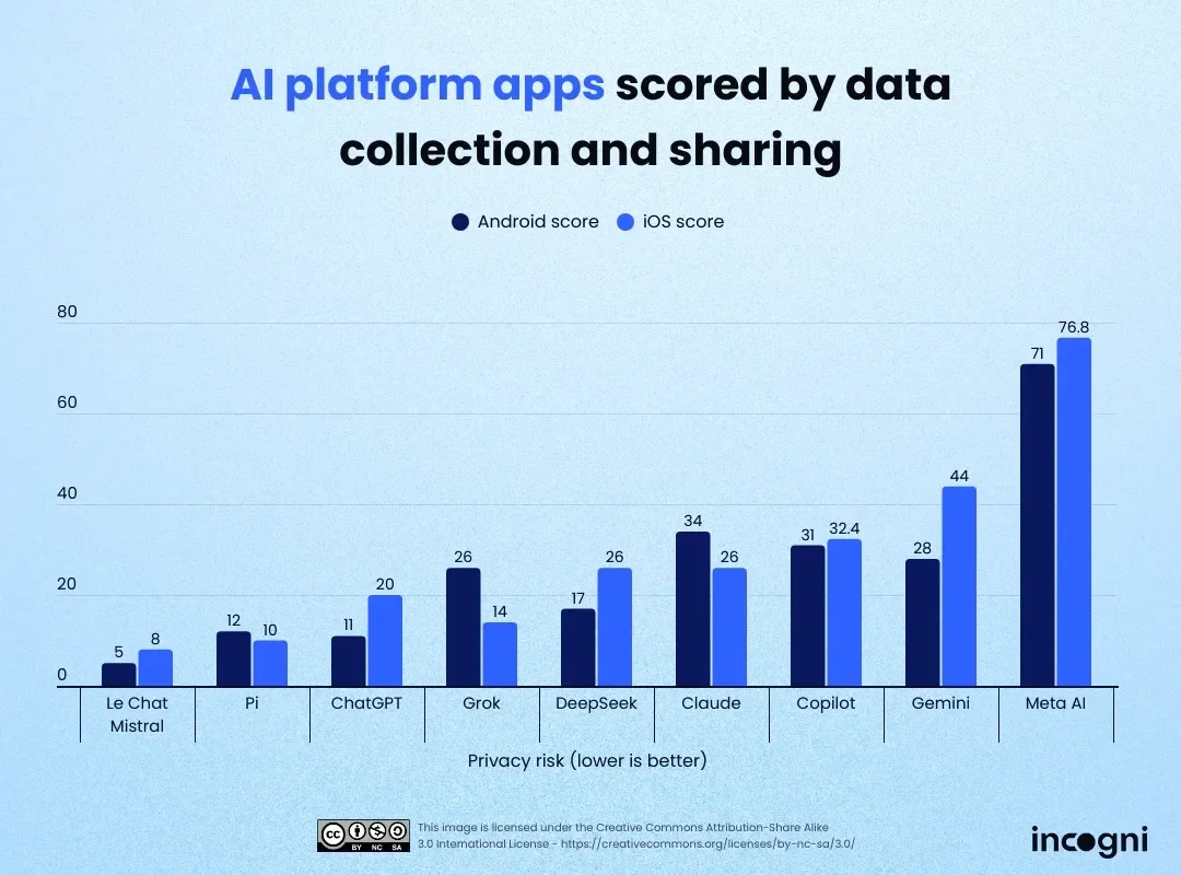 An der Spitze der Studie steht das französische KI-Modell Le Chat von Mistral. Es sammelt auffallend wenige personenbezogene Daten und verzichtet darauf, Nutzereingaben standardmäßig fürs Training zu speichern. Das macht es zu einem der wenigen Systeme, bei dem Nutzer nicht aktiv widersprechen müssen, um ihre Informationen zu schützen. Besonders hervorzuheben ist, dass Mistral seine Datenschutzrichtlinien offenlegt – klar verständlich, gut auffindbar, ohne juristische Hürden. Das schafft Vertrauen und setzt Maßstäbe.