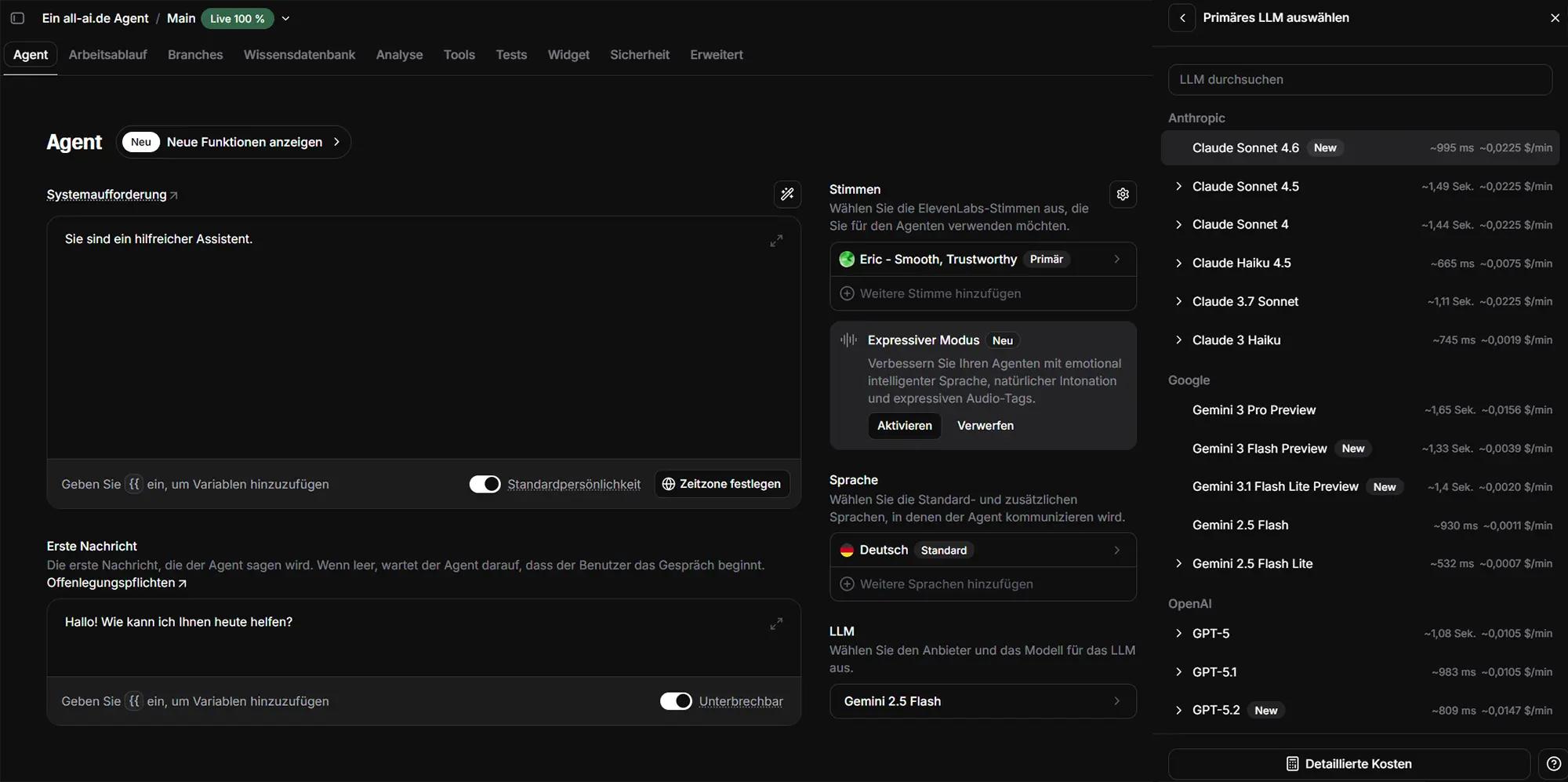 Nutzer konfigurieren komplette KI-Assistenten direkt im Browser. Man wählt vorgefertigte Vorlagen oder baut den Agenten von Grund auf neu auf. Die Sprachausgabe nutzt das bewährte Voice Cloning, um dem Bot eine individuelle Markenstimme zu verleihen.