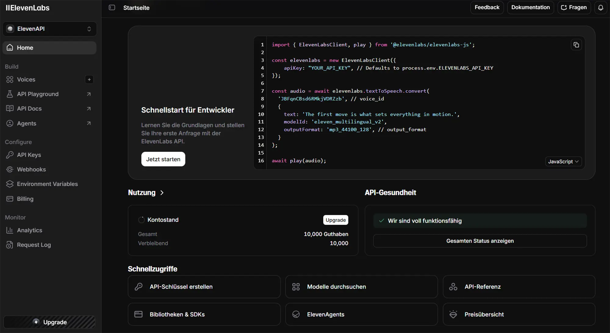 Für Software-Entwickler bietet Elevenlabs eine leistungsstarke und hervorragend dokumentierte Schnittstelle. Die API bildet das Rückgrat für unzählige Drittanbieter-Apps auf dem Markt.